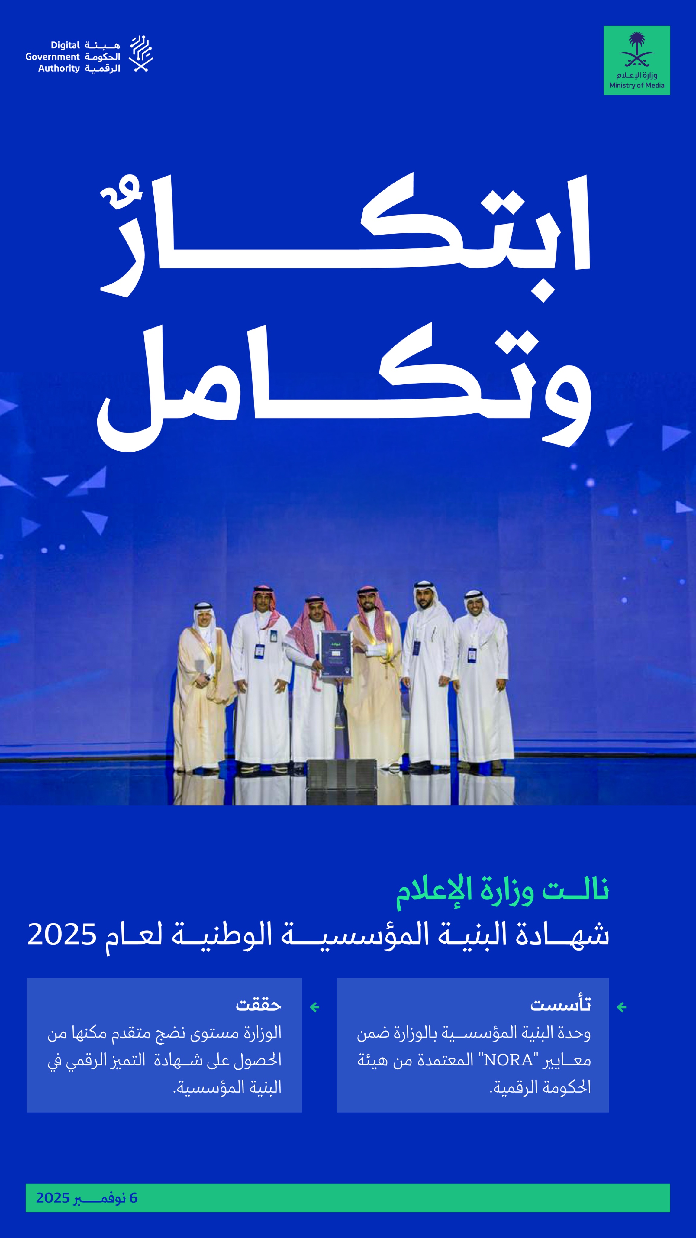 وزارة الإعلام تواصل التميّز؛ وتنال شهادة البنية المؤسسية الوطنية 2025