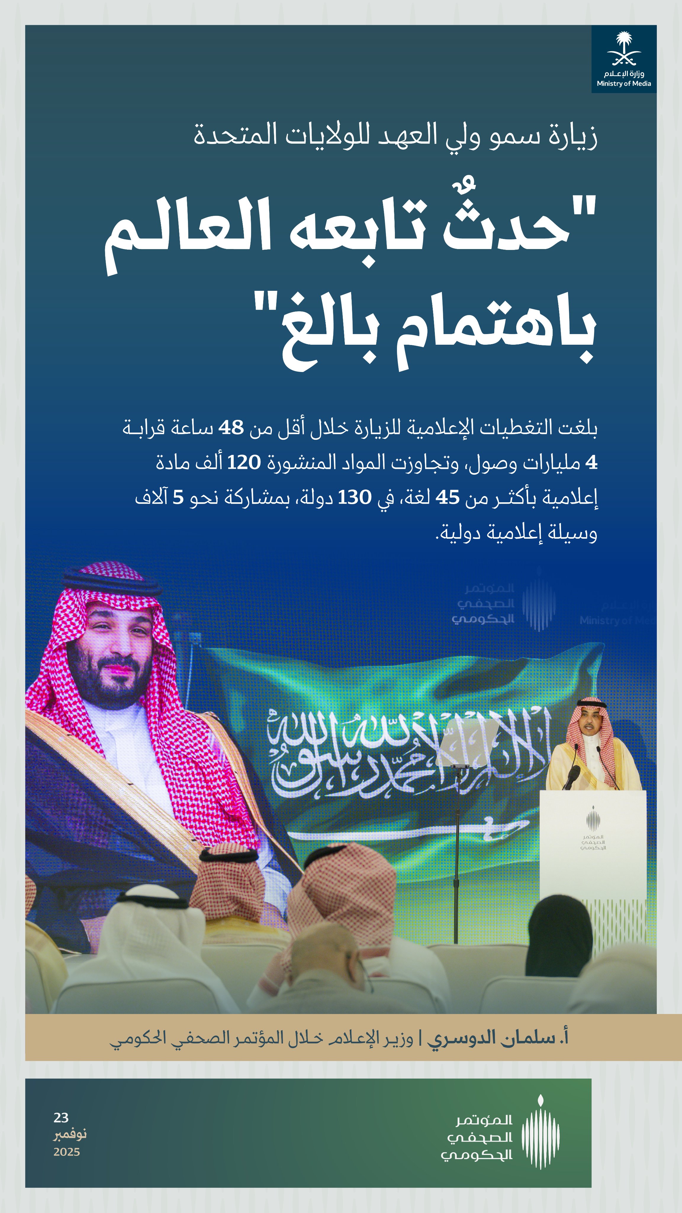 "زيارة سمو ولي العهد حدثٌ تابعه العالم باهتمام بالغ"؛ وزير الإعلام خلال المؤتمر الصحفي الحكومي.