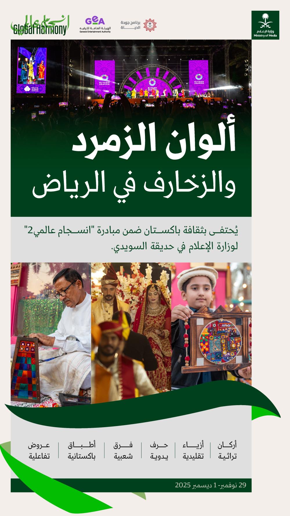 بألحانها وزمردها ثقافة باكستان تحضر في الرياض، ضمن مبادرة "انسجام عالمي 2" في حديقة السويدي.