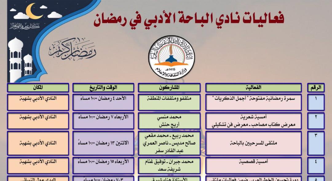 انطلاق فعاليات " رمضان ... الثقافة ألوان " بأدبي جازان
